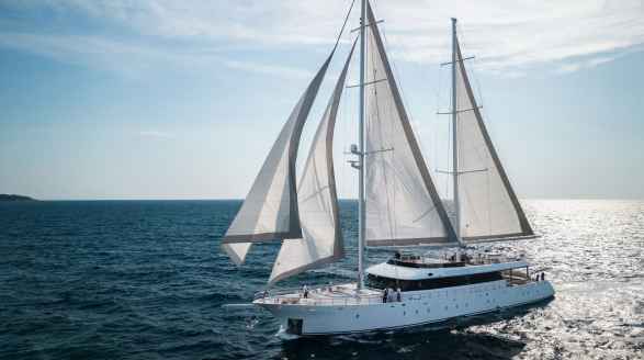 Introduced in May 2020, this luxury crewed motor sailer is available for charter along the breathtaking Adriatic coast through BomiShip, the appointed central agency. Aurum Sky is truly a standout yacht on the charter market. Measuring 43.5 metres, she boasts exceptionally spacious interiors. Accommodating up to 12 guests, she features six double en-suite cabins, each ranging from 20 to 25 m², with two cabins convertible to twin layouts.